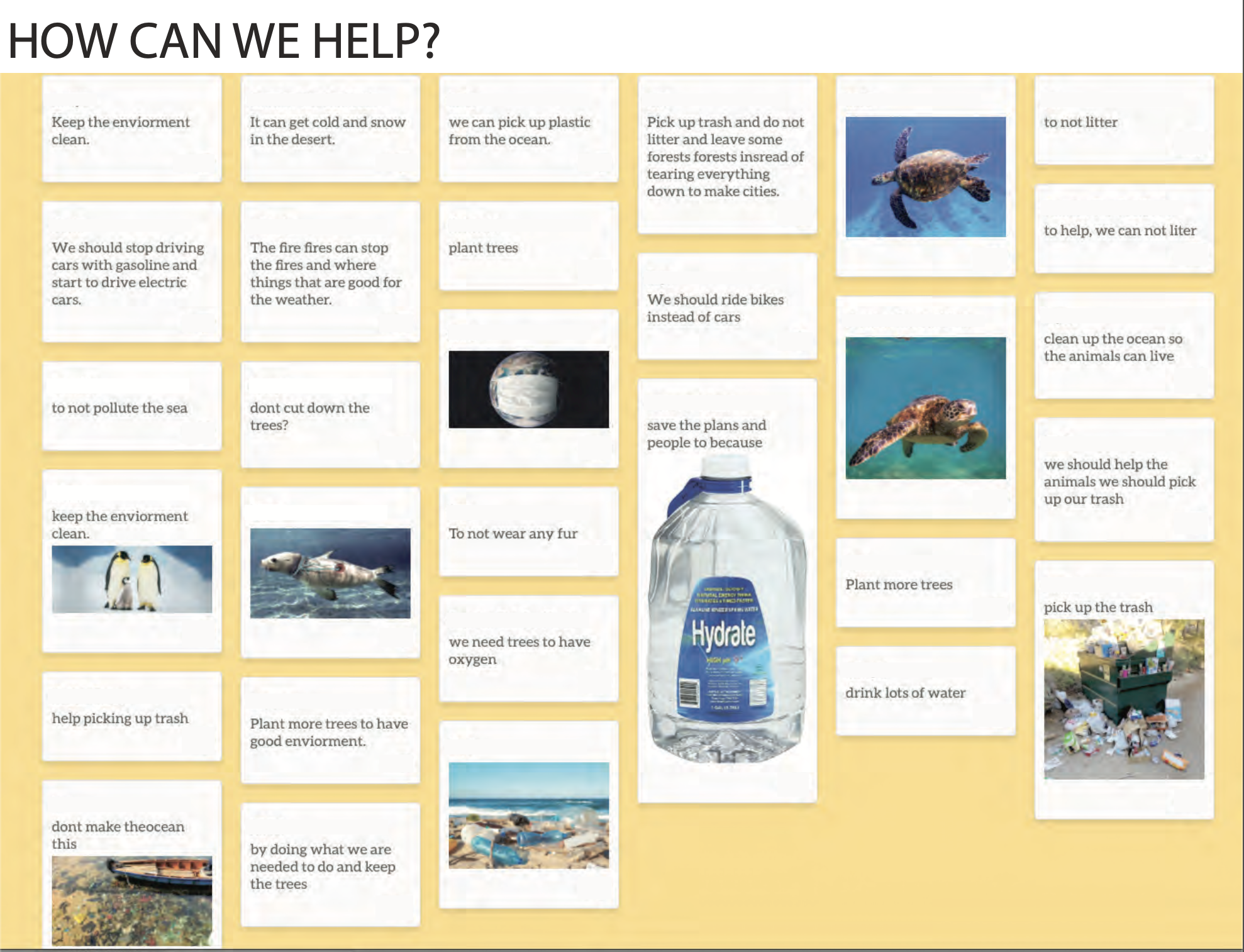 Although their understanding may not be as developed as a 15-year-old’s, the 4th graders I questioned were still able to answer “what is climate change?”. The majority of these students were able to understand that climate change was something of concern and that steps exist that help reduce its effects. This ability for students to grasp the importance of the issue highlights the benefits of having climate change as a significant subject to include in curricula of all ages. By allowing for climate change to be discussed in a school setting, kids are able to learn the science and effects in more depth than through the lense of pop culture. If they can understand that turtles are at risk by the use and subsequent disposal of plastic straws, children can handle learning about bigger topics like key contributors to global warming and sea level rise. The earlier that children are introduced to the science of climate change, the sooner they can become strong informed actors and innovators in our fight to combat climate change.